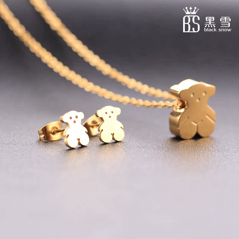 Big sale factory direct steel ribbon glasses bear earrings pendant set thickened thick pendant thin