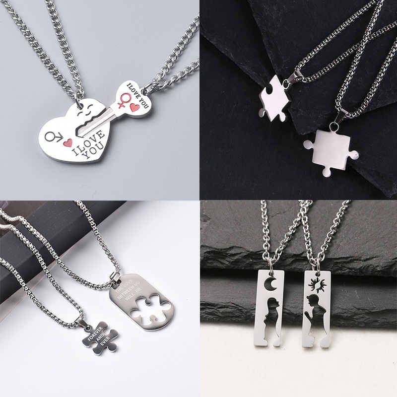 Cross-Border Love Key Engraved Letter Two-Piece Couple Necklace Fashion Creative Necklace Student Companion Necklace Wholesale