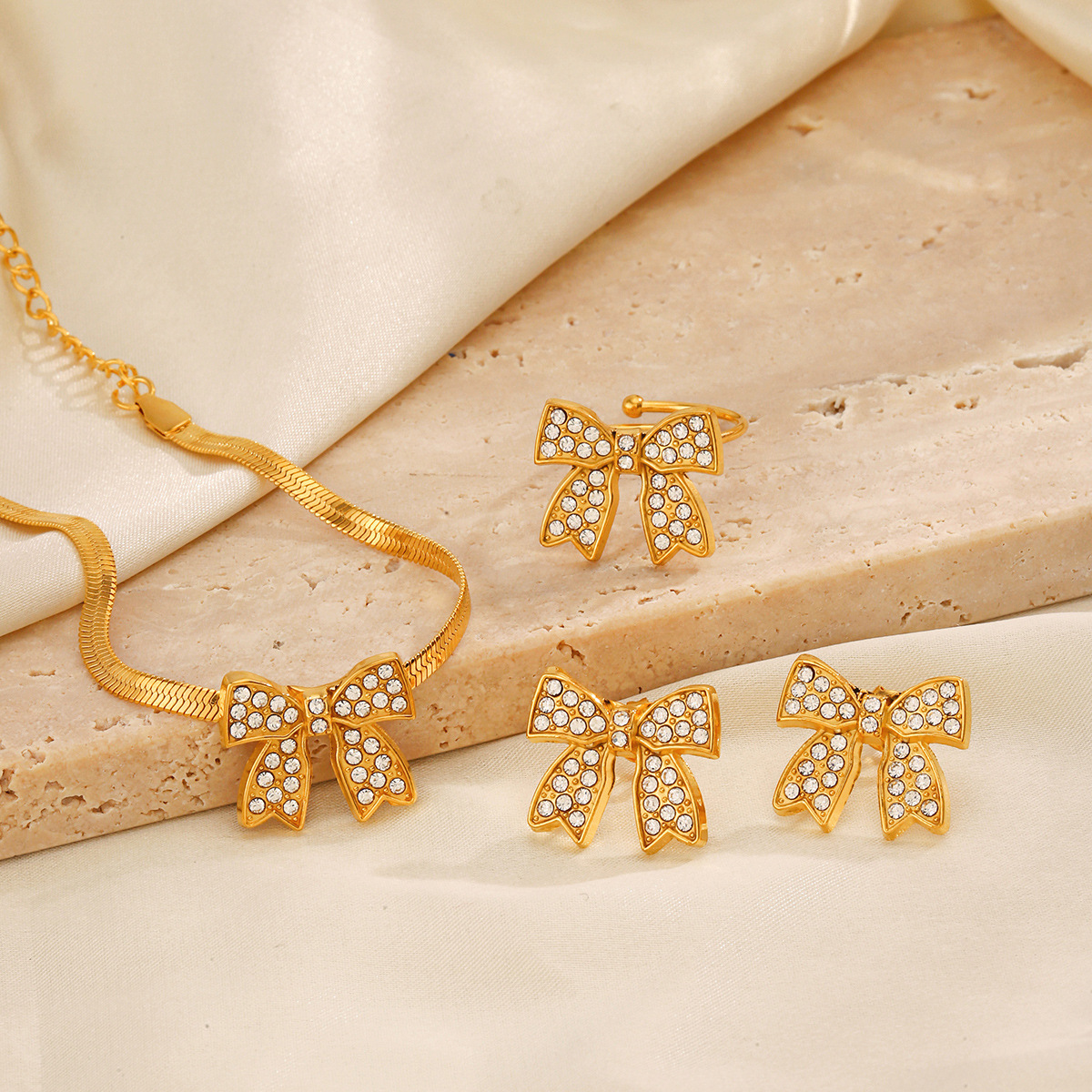 European and American Popular Stainless Steel Bow Jewelry suit Ins Style Fashion 18K Gold Plated Zircon Butterfly Jewelry suit