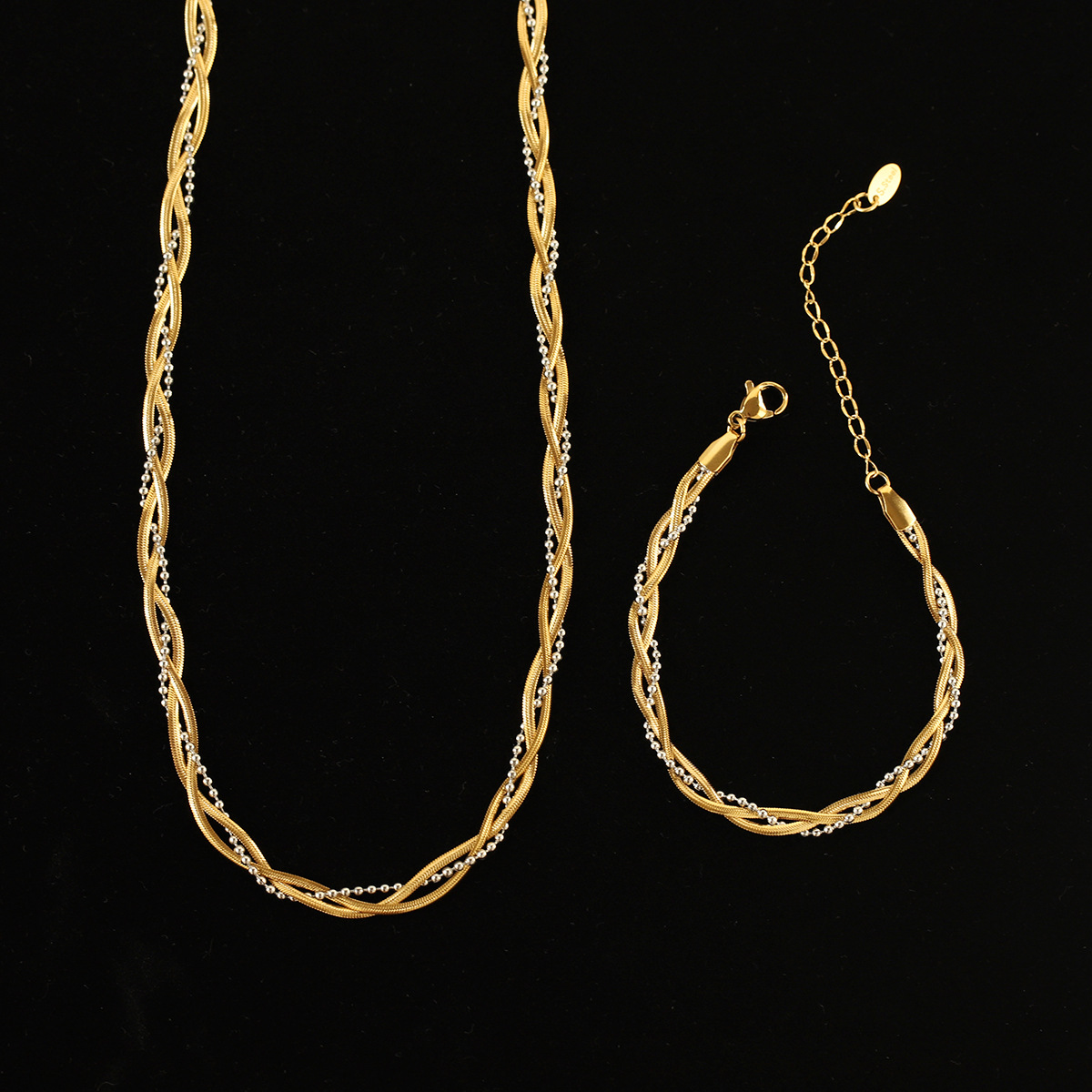 Italian Two-Color Twist Braided Simple Wheat Ear French Necklace Clavicle Chain Bracelet Set Titanium Steel Xl660