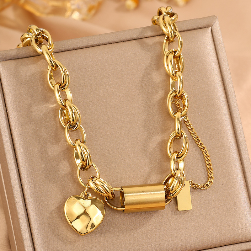 Cross-Border Popular Love Chain Bracelet Necklace Set European and American Fashion Non-Fading Titanium Steel Necklace Women's Jewelry Wholesale