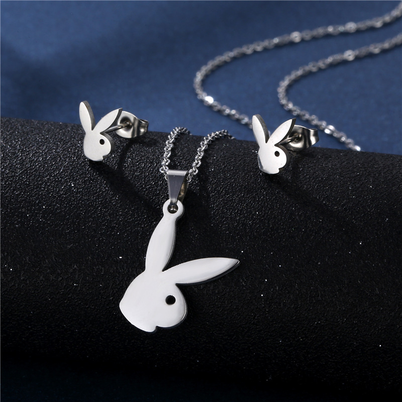 Simple cartoon rabbit clavicle chain stainless steel creative animal avatar rabbit necklace earrings suit accessories