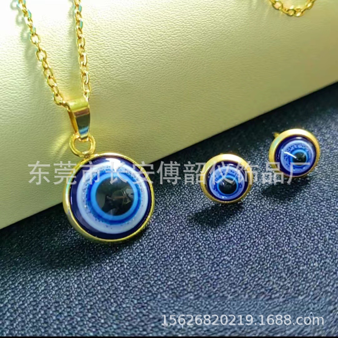 Europe and the United States cross-border resin hot devil's eye earrings necklace fashion personality stainless steel suit factory direct sales
