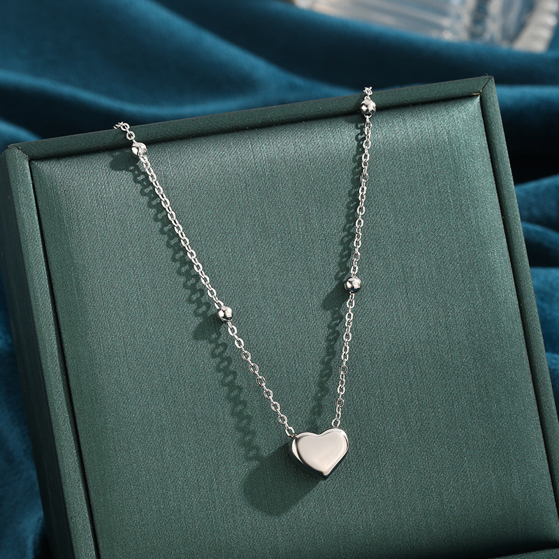 European and American Popular Love Pendant Round Bead Titanium Steel Necklace Exquisite Versatile Temperament Simple Fashion Set Wholesale for Women