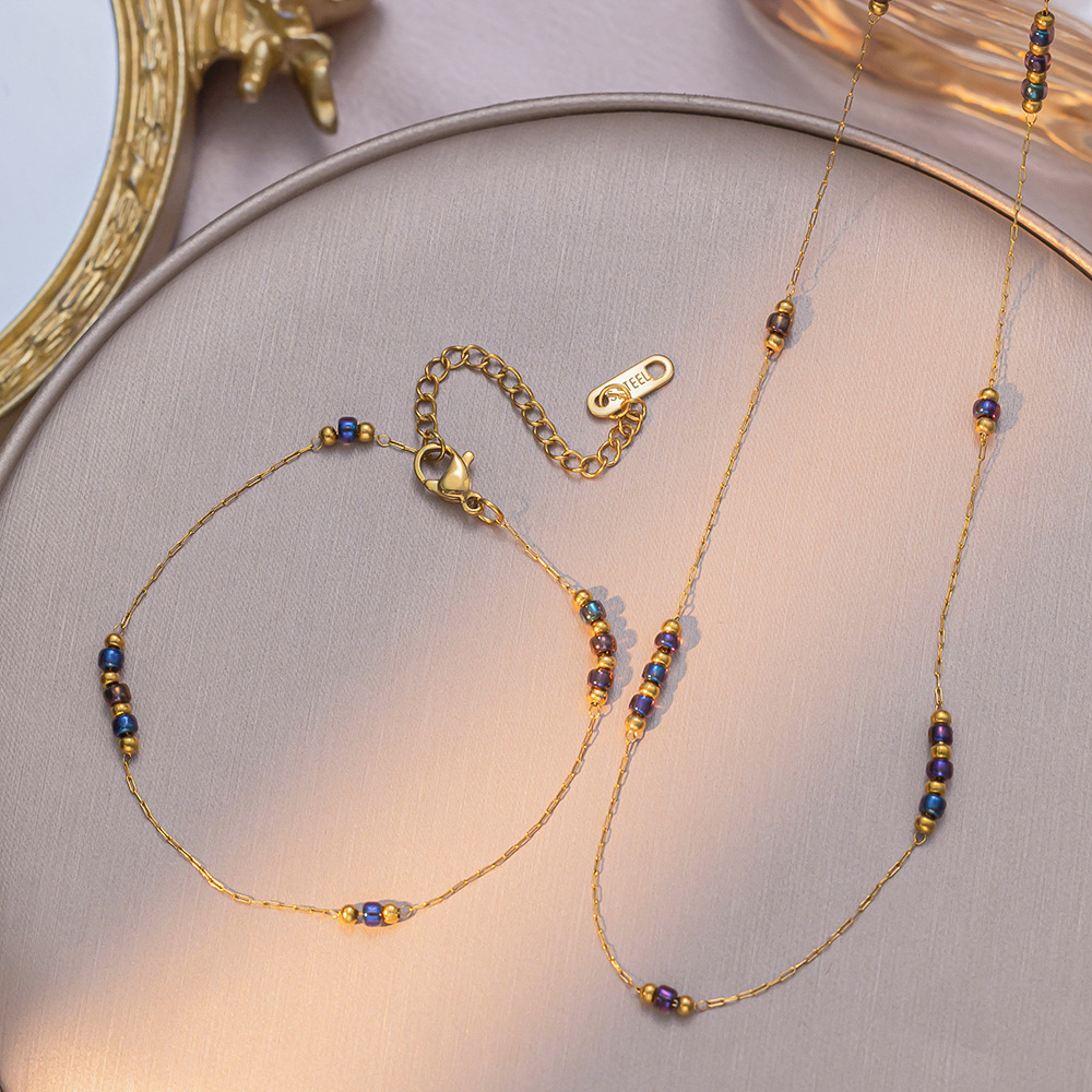 Ultra-Fine Broken Gold Glazed Amber Beads Exquisite Titanium Steel Necklace Girls Retro Fashion Neck Chain Clavicle Chain New Set