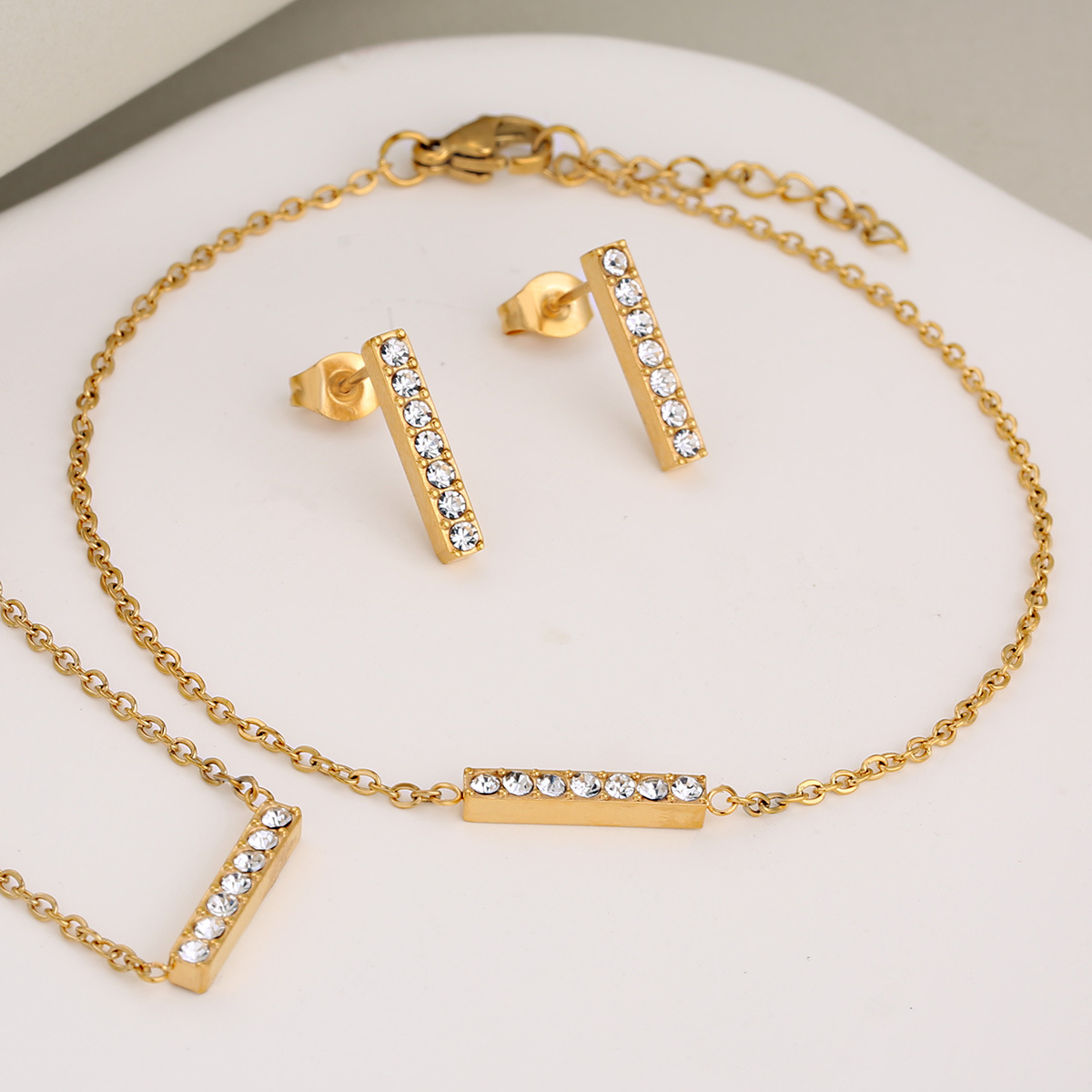 Cross-border exclusive for Europe and the United States explosion simple light luxury ins style diamond necklace bracelet earrings three-piece set