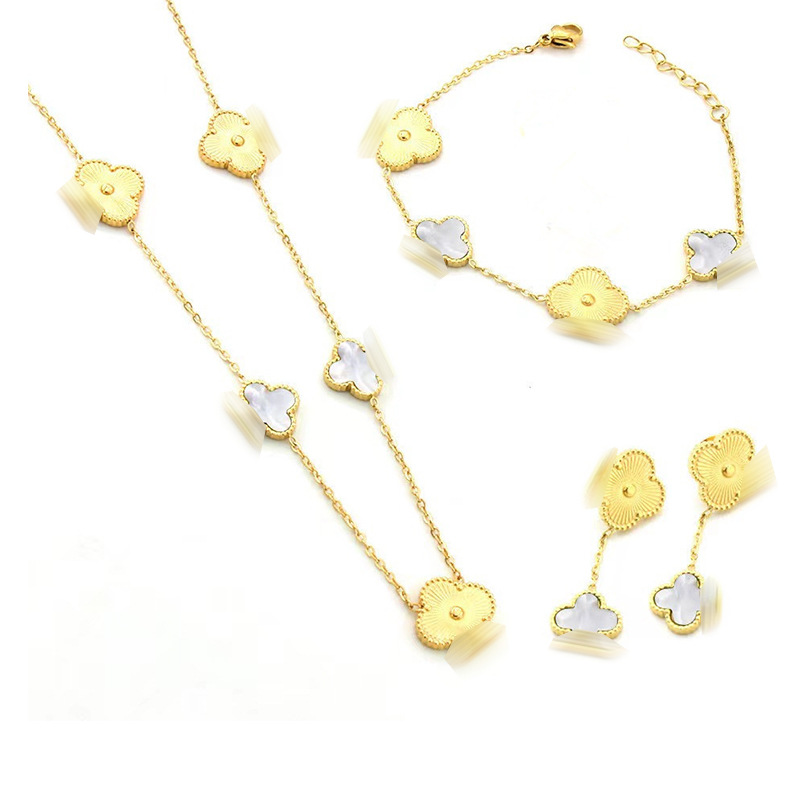 New 18K Gold Four-Leaf Clover Titanium Steel Necklace Women's Four-Flower Necklace Bracelet Earrings Three-Piece Set Mother-Of-Pearl Necklace Wholesale