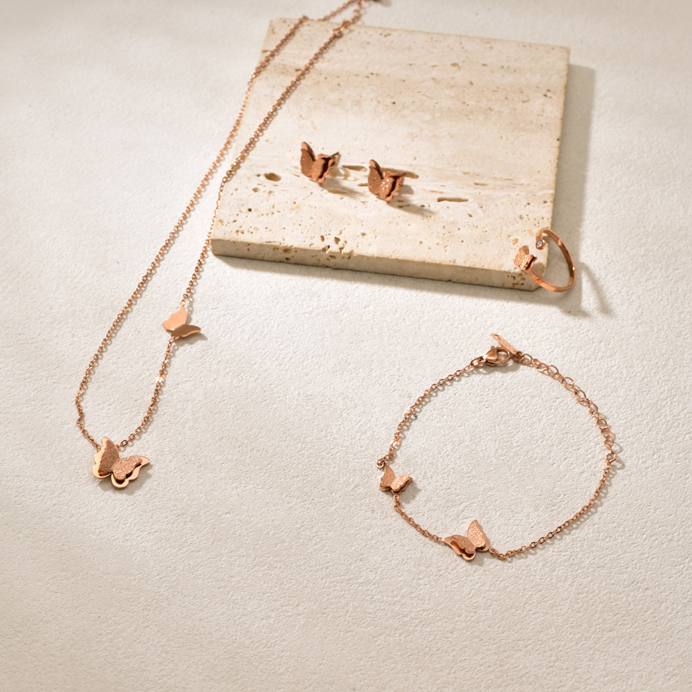 Wholesale Stainless Steel Jewelry Women's Fashionable Temperament Personalized Butterfly Necklace Earrings Ring Bracelet Four-Piece Set
