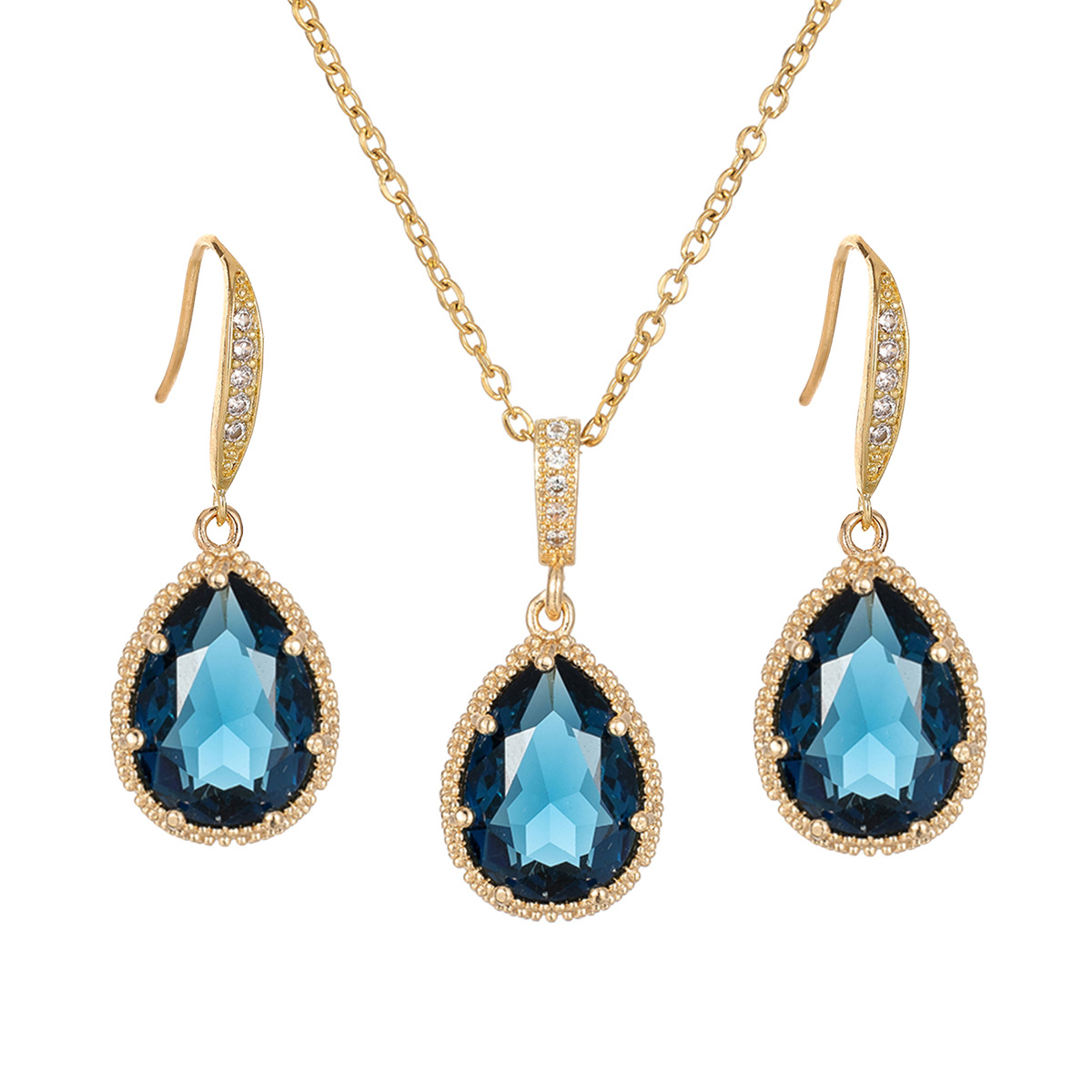 New Drop Earrings Pendant suit Zircon Earrings Green Crystal Pendant Stainless Steel Chain Necklace Accessories for Children