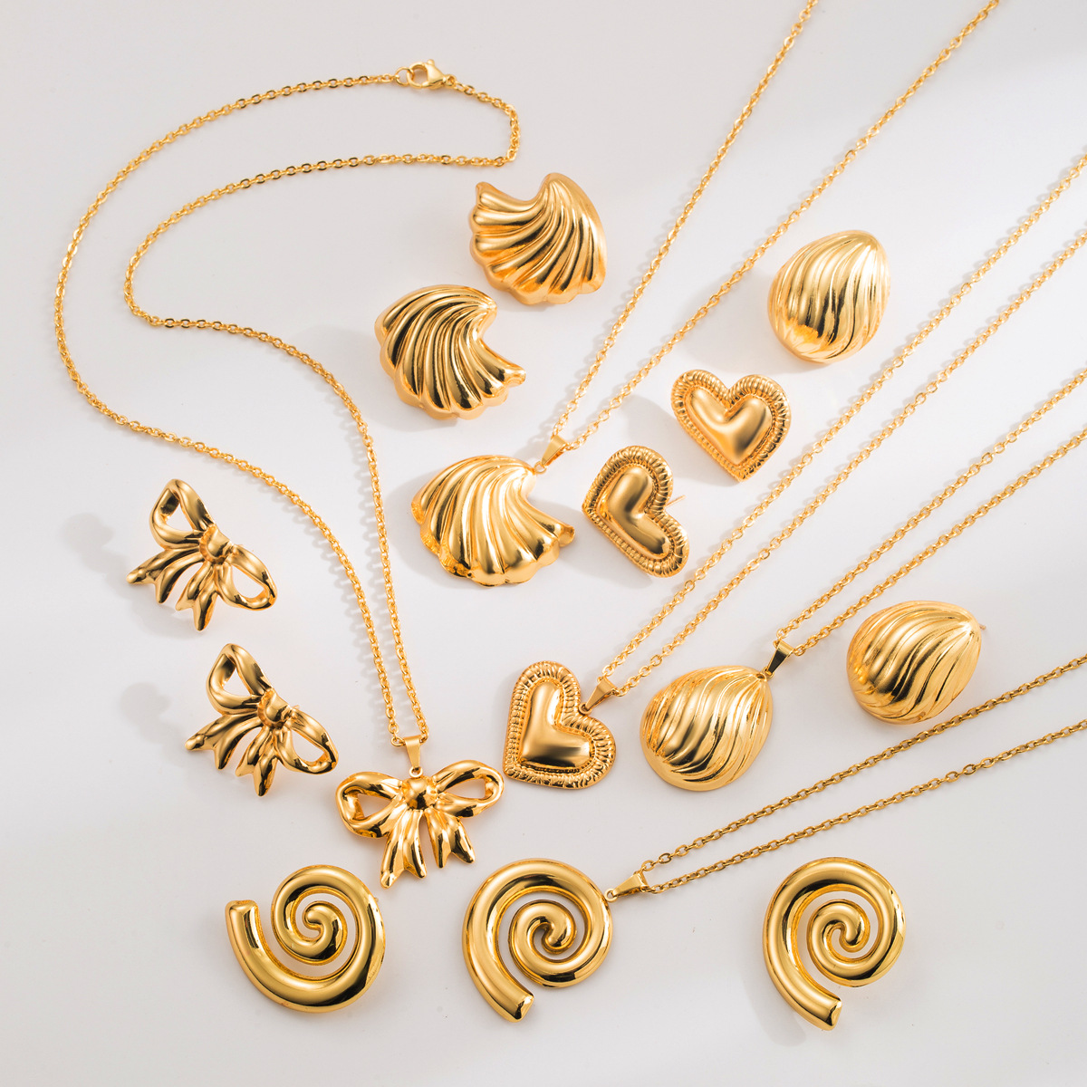 European and American niche light luxury style shell element jewelry suit 18K gold plated stainless steel jewelry suit high sense