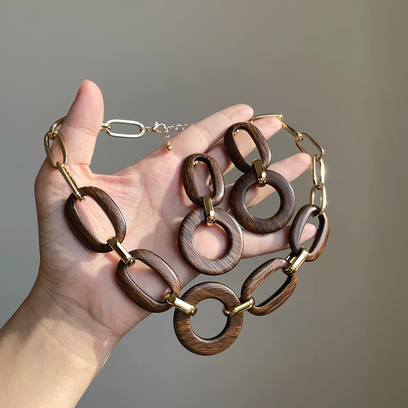 European and American Cross-Border Jewelry Wholesale Round Cake Nail Card Home Style Interlocking Diamond-Free Titanium Steel Necklace Four-Piece Set
