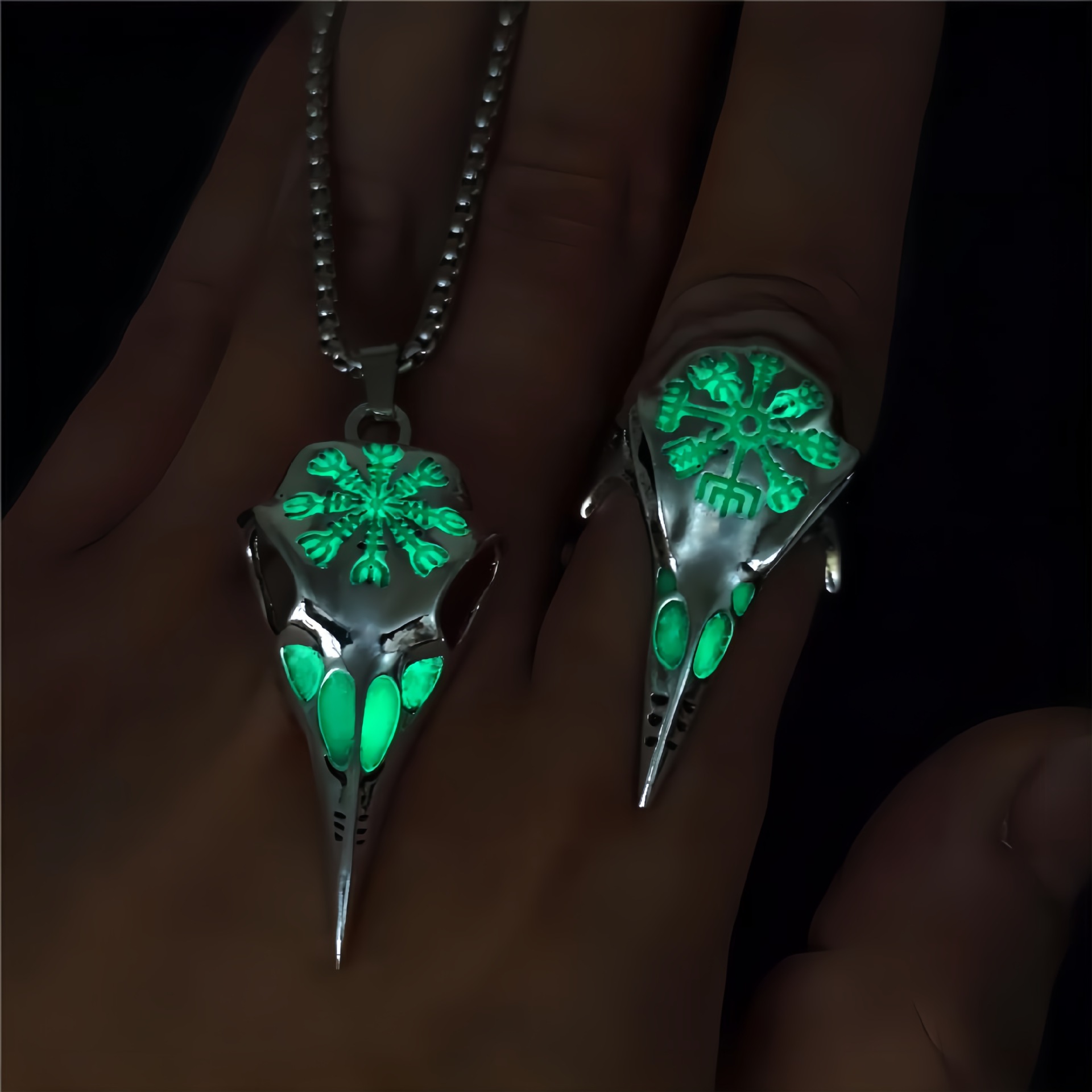 European and American Vikings bird skull luminous pendant ring suit male hip hop Eagle mouth self-defense open luminous ring