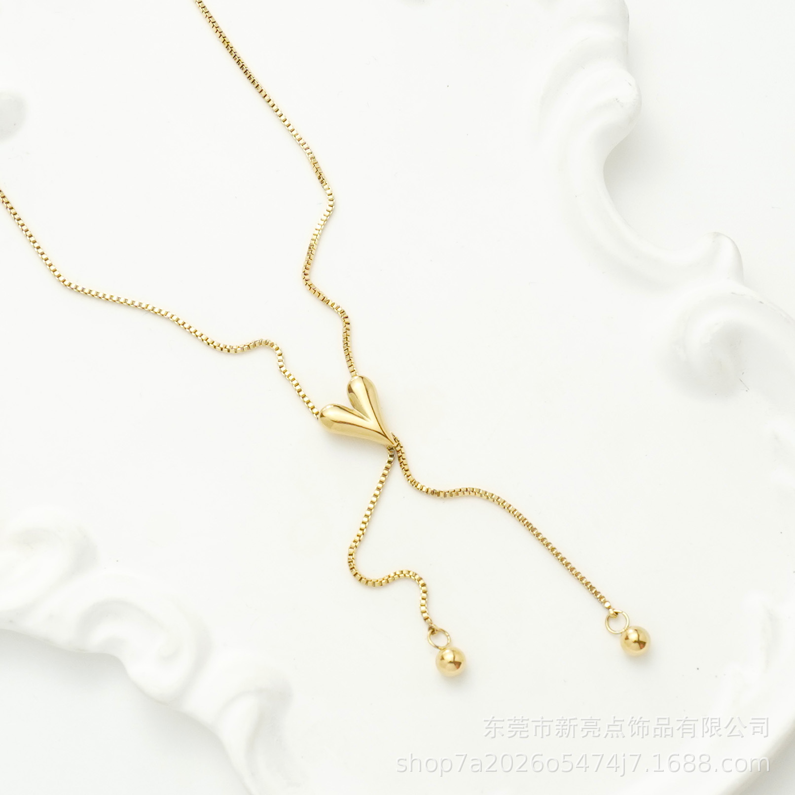 Cross-Border Stainless Steel Heart Necklace Small Gold Ball Tassel Box Chain 18K Gold-Plated Heart-Shaped Niche Set Female Popular