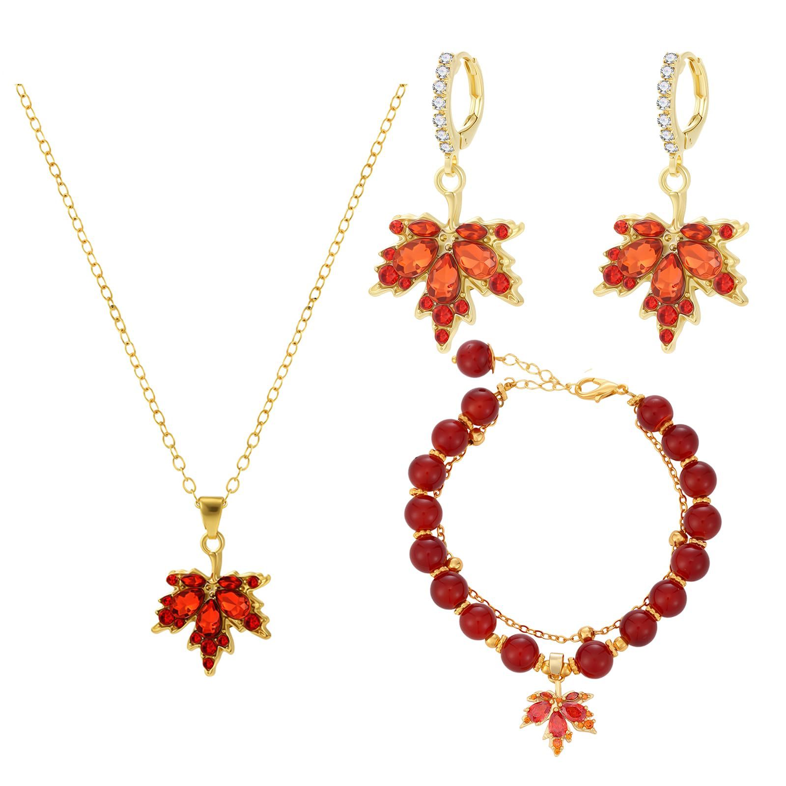 Jewelry Set Women's Maple Leaf Bracelet Earrings Pendant Necklace Thanksgiving Jewelry Gift Jewelry Set Manufacturer