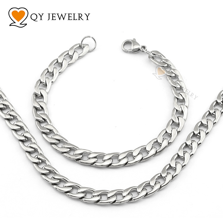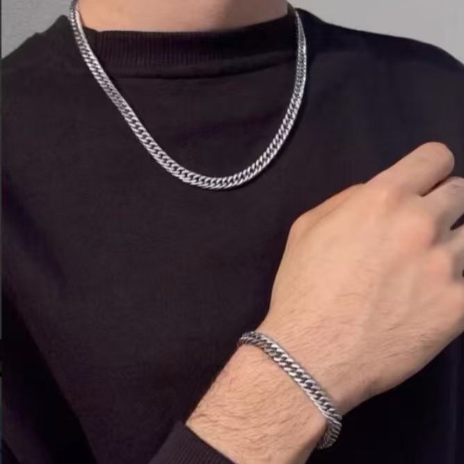 European and American Cross-border Stainless Steel Cuban Chain Hip Hop Punk Men's and Women's NK Necklace Bracelet Trendy Thick Chain Jewelry Set