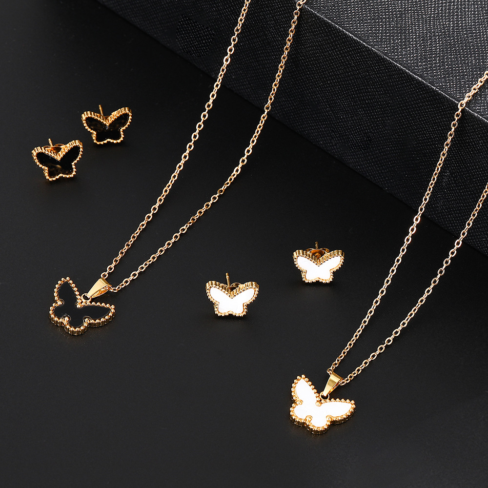 French Creative Necklace and Earrings Set, Small Butterfly Necklace, Women's Light Luxury Niche Necklace, Gift for Girlfriend Wholesale