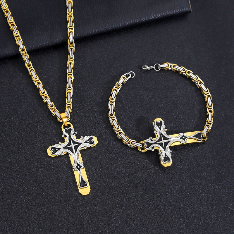 European and American Hot Selling Retro Cross Pendant Necklace Bracelet Set Women's Necklace Fashion Men's Jewelry Wholesale