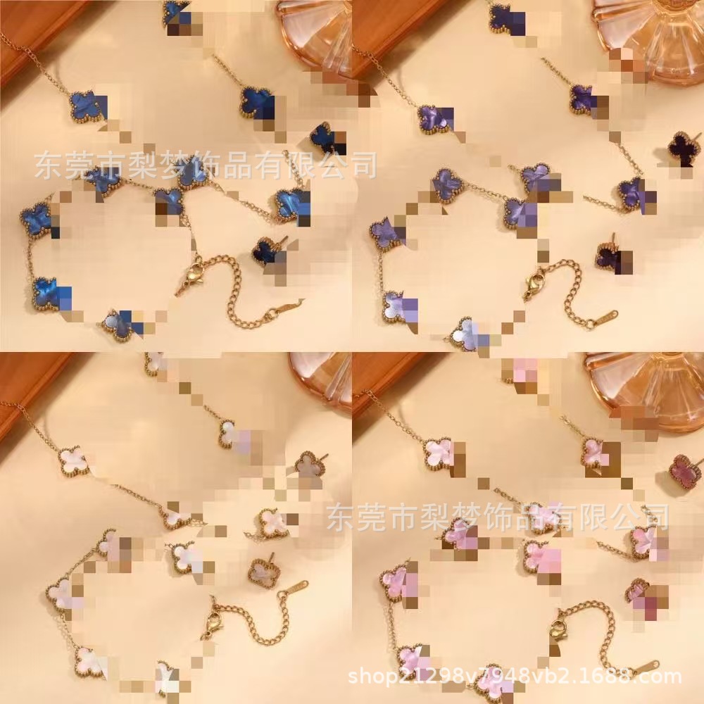 Titanium Steel Non-Fading Double-Sided Four-Leaf Flower Three-Piece Set for Women, Fashionable Temperament, Light Luxury, Internet Celebrity Clavicle Chain Bracelet Wholesale