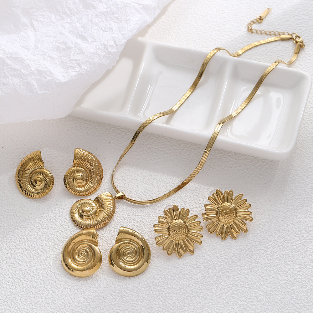 European and American Cross-Border Flower Jewelry Gold Set Niche Versatile Retro Earrings High-End Fashion Necklace Wholesale