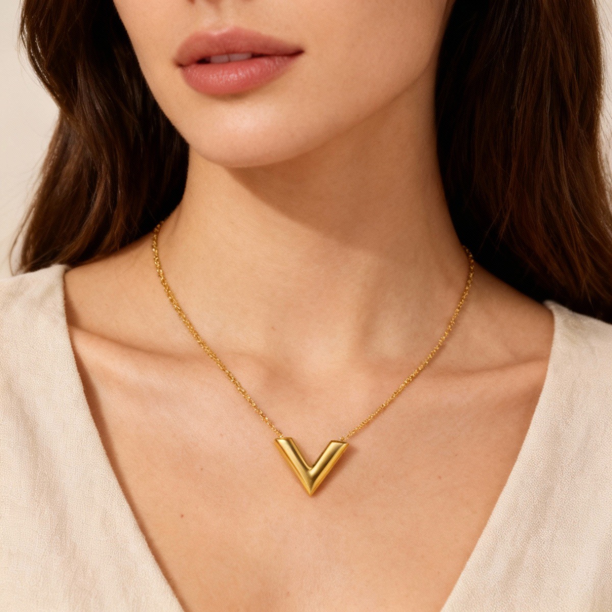 Cross-Border European and American Fashion Stainless Steel Simple V-Shaped Necklace Earrings Women's Set Manufacturer Spot Wholesale