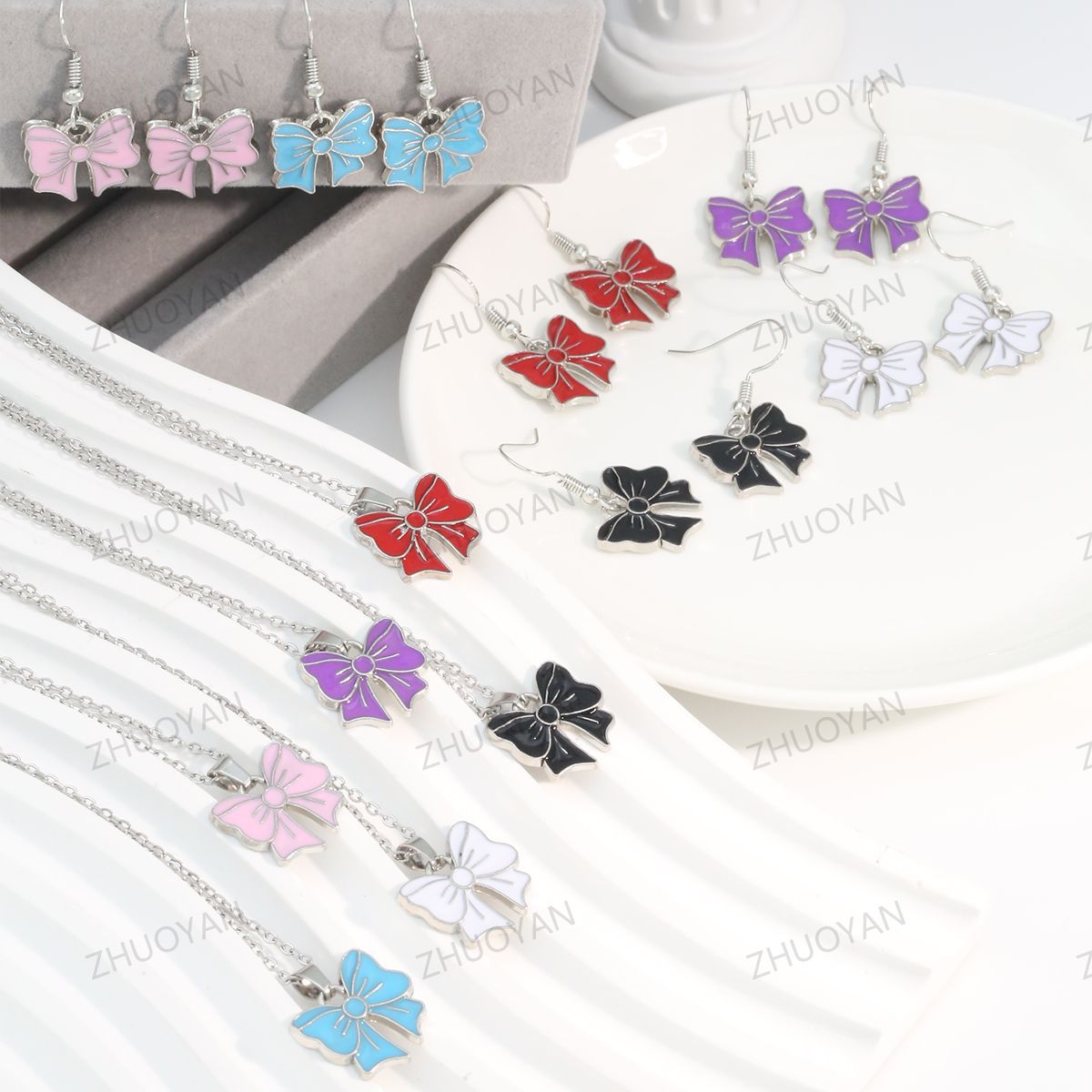 Drop oil bow suit female fashion high sense y2k gift necklace summer female high sense niche jewelry