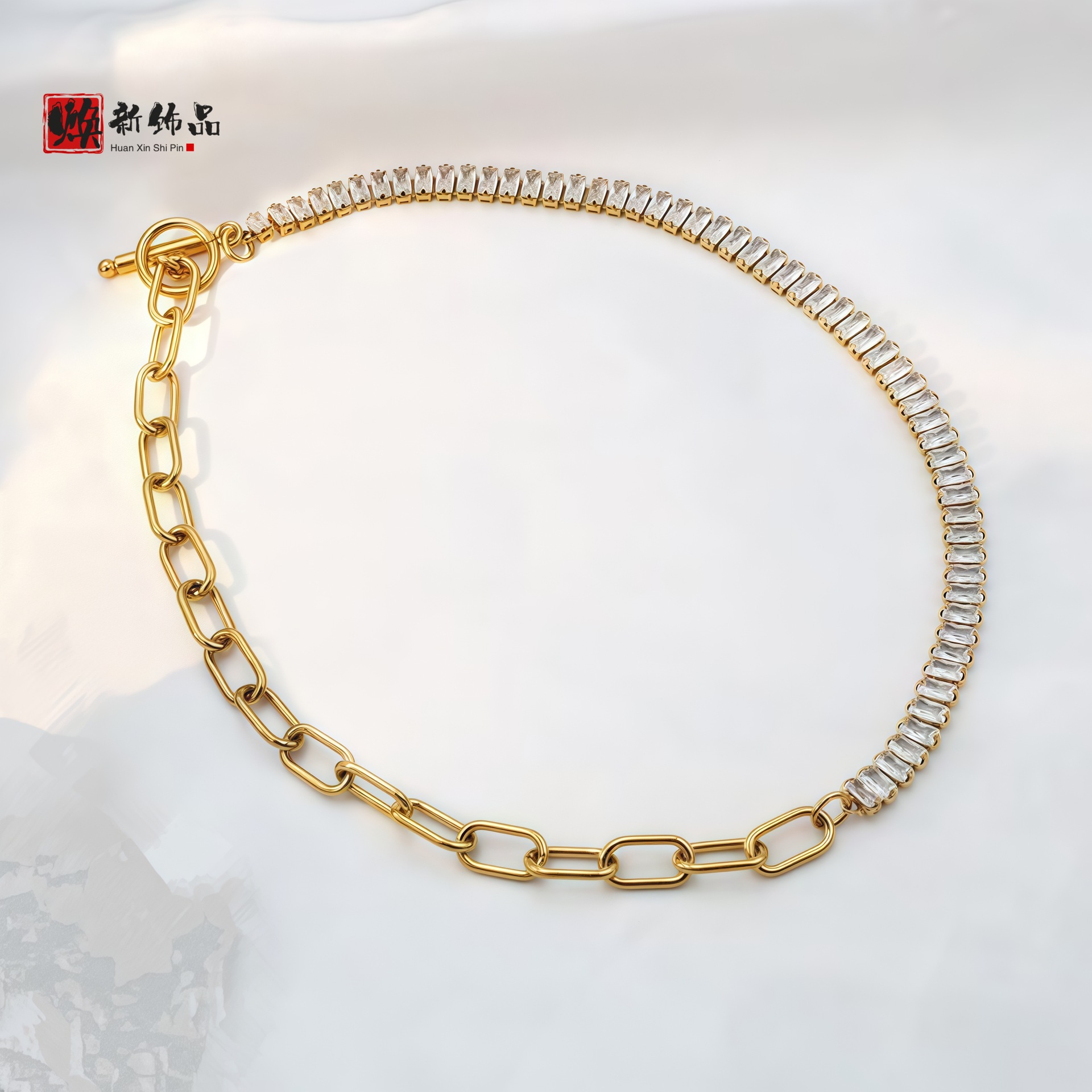 Japanese and Korean Style Niche Handmade Chain Design Zircon Splicing Necklace Bracelet Earrings Set Simple Fashion Elegant Accessible Luxury