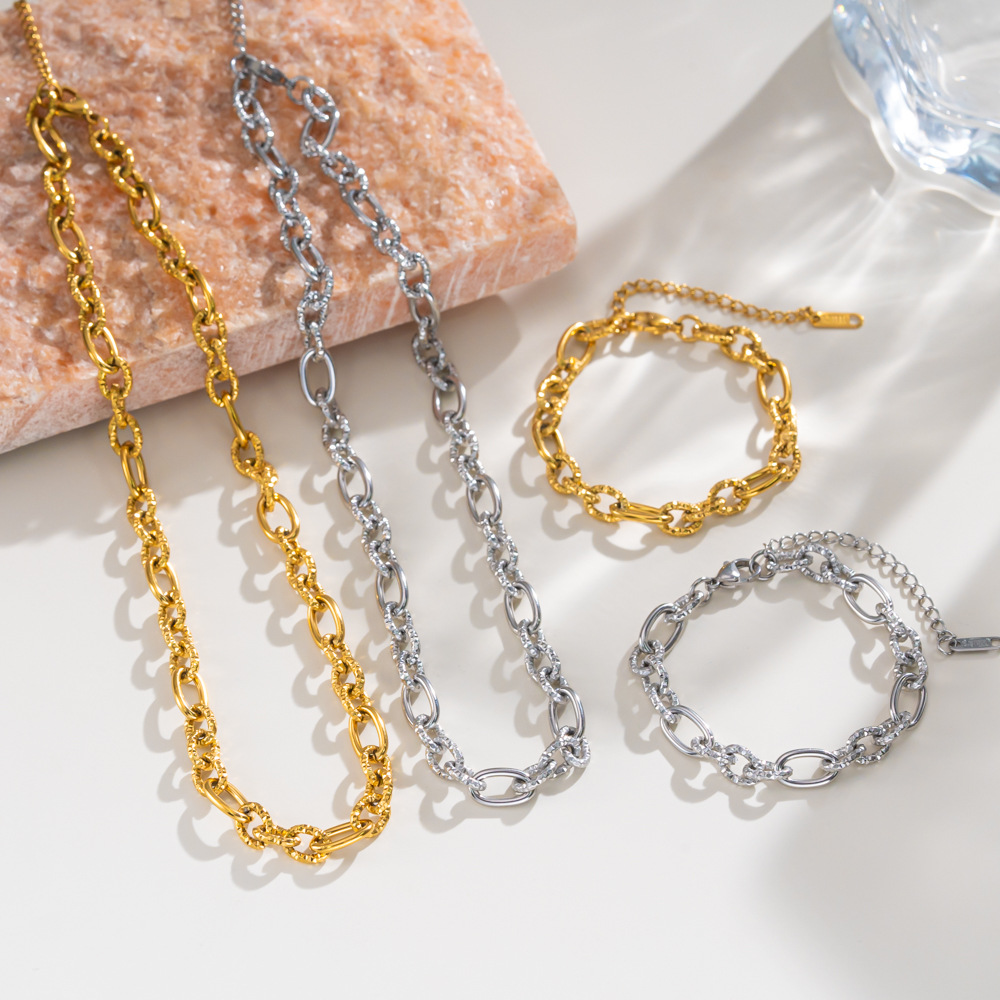 European and American Ins Style Pattern Thick Chain Non-Fading Necklace Women's Titanium Steel Retro Clavicle Chain Plated 18K Gold Stainless Steel Set
