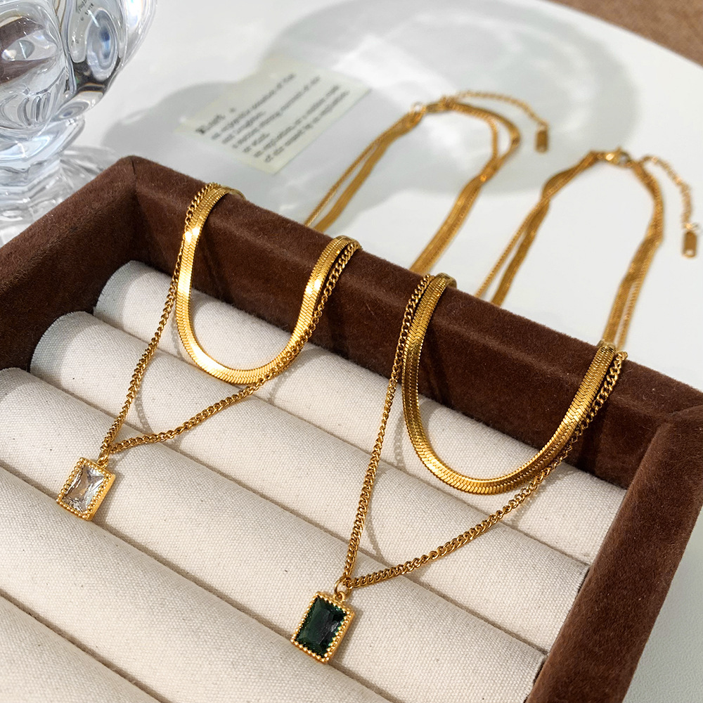 Necklace female Net red color zircon geometric niche light luxury new design sense pendant temperament suit titanium steel necklace