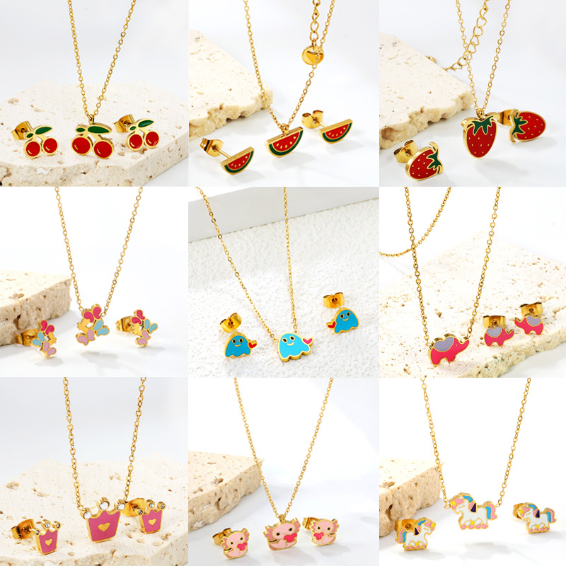 European and American Fruit Series Jewelry Set, Fashionable, Sweet and Cute, Oil-Drip Earrings and Necklace Set, Stainless Steel Jewelry for Women