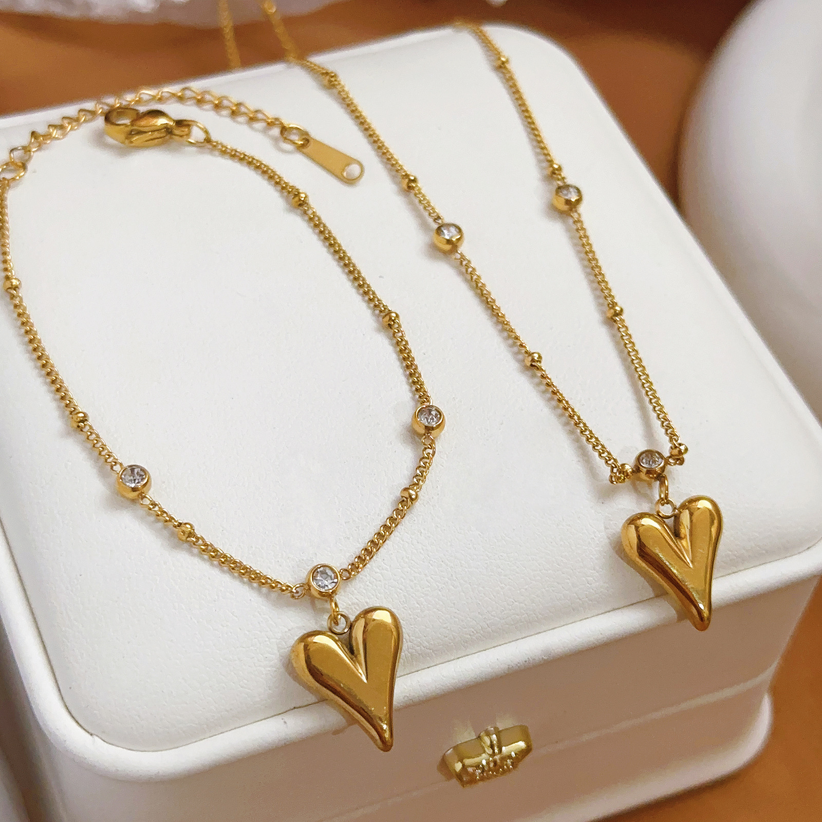 Love Crystal Zircon New Necklace Set Bracelet Female Ins Popular 18K Gold Titanium Steel Personalized Design Bestie