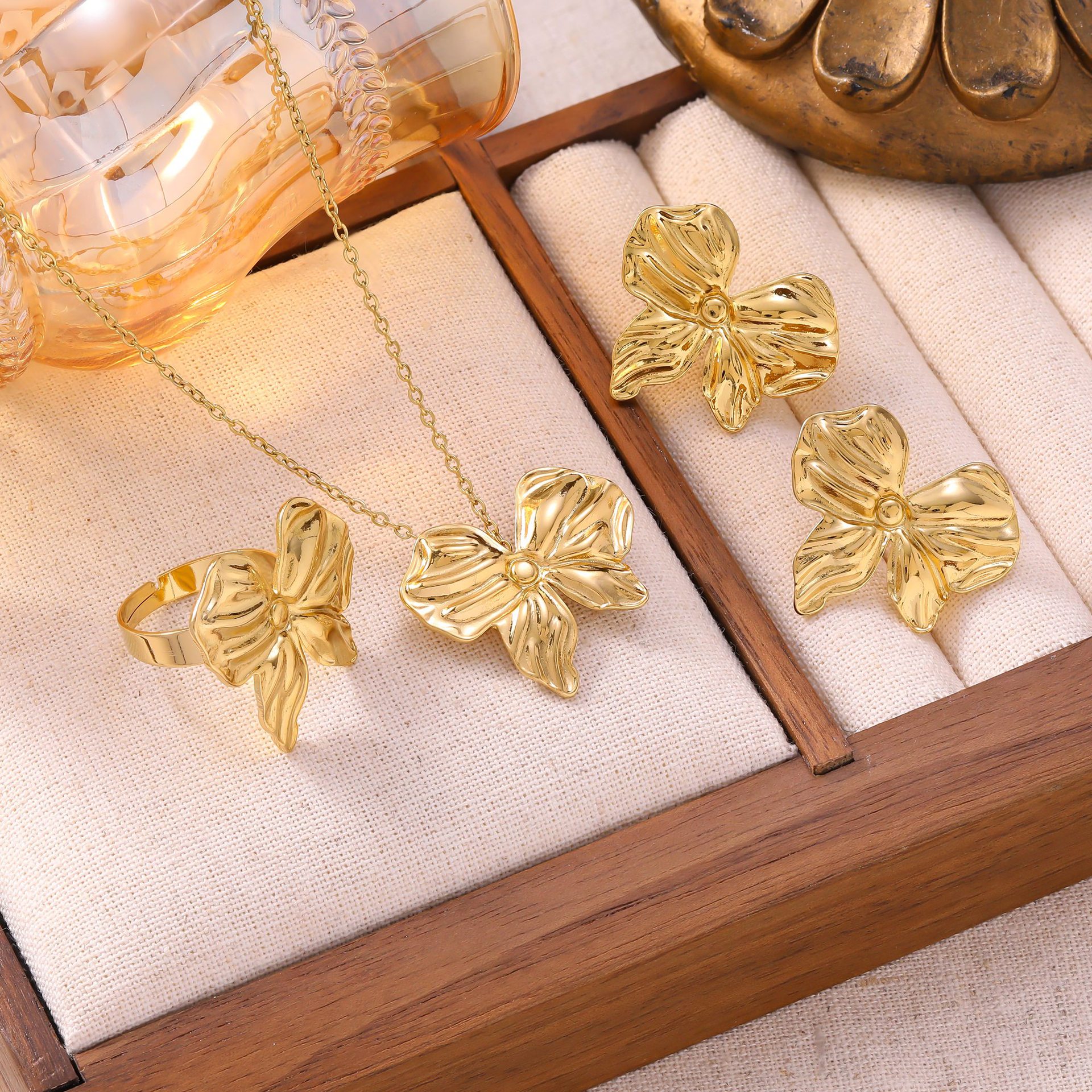 Spot Wholesale European and American Cross-Border New Stainless Steel Set Bow Niche High-End Titanium Steel Accessories