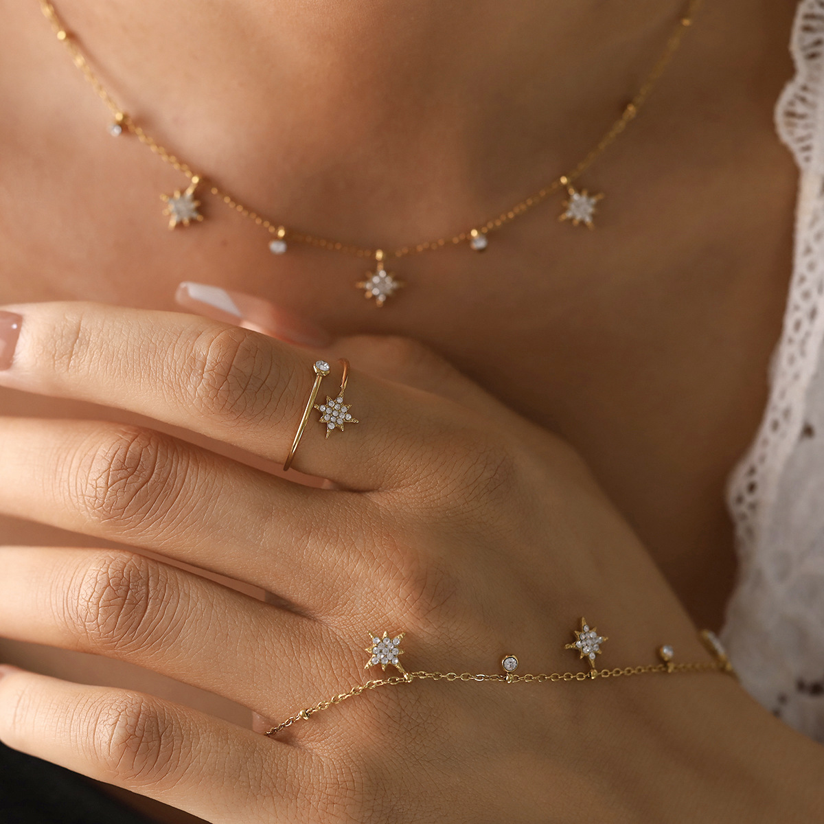 European and American Cross-Border New Open Ring Women's Personalized Full Diamond Love Moon Titanium Steel Bracelet Non-Fading Jewelry Set