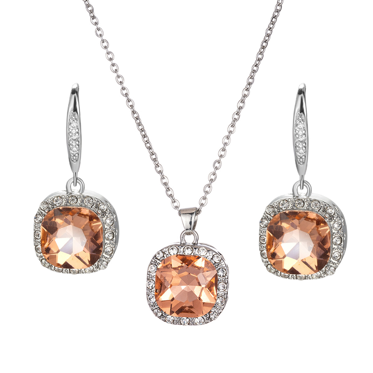 Stainless steel necklace earrings suit cross-border new yellow crystal European and American fashion jewelry yellow diamond vintage clavicle chain pendant