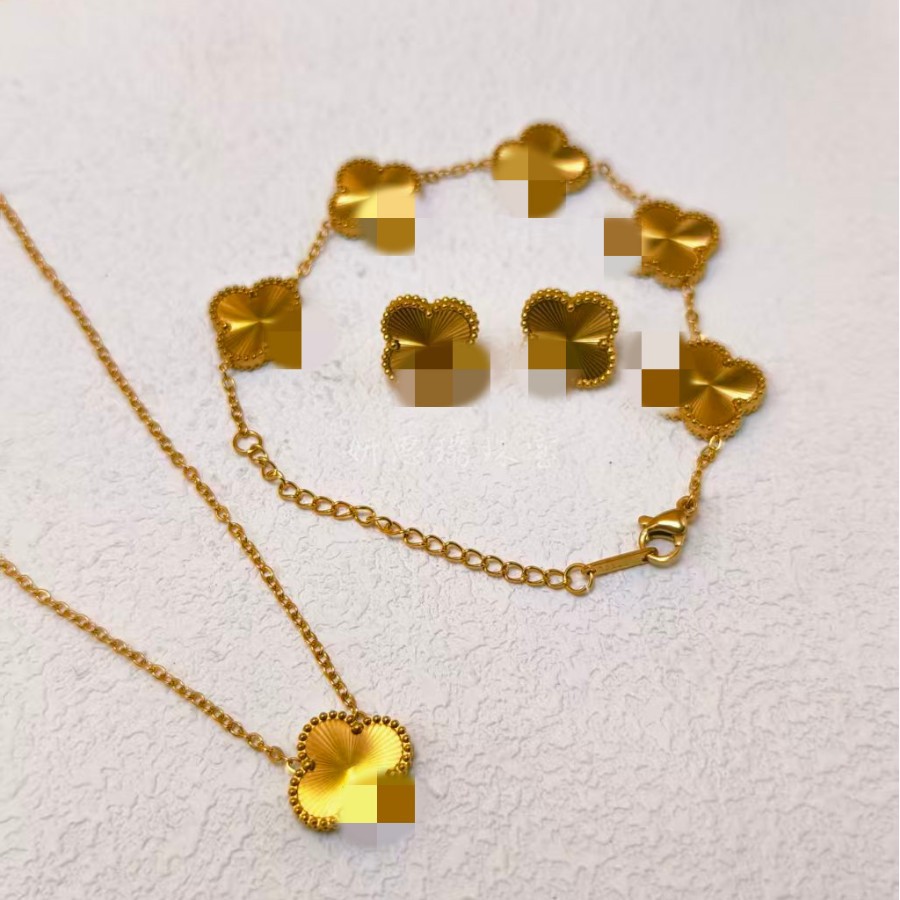 high quality Double-layer Laser Clover Necklace Earrings Bracelet suit Gold silver Flower Jewelry suit
