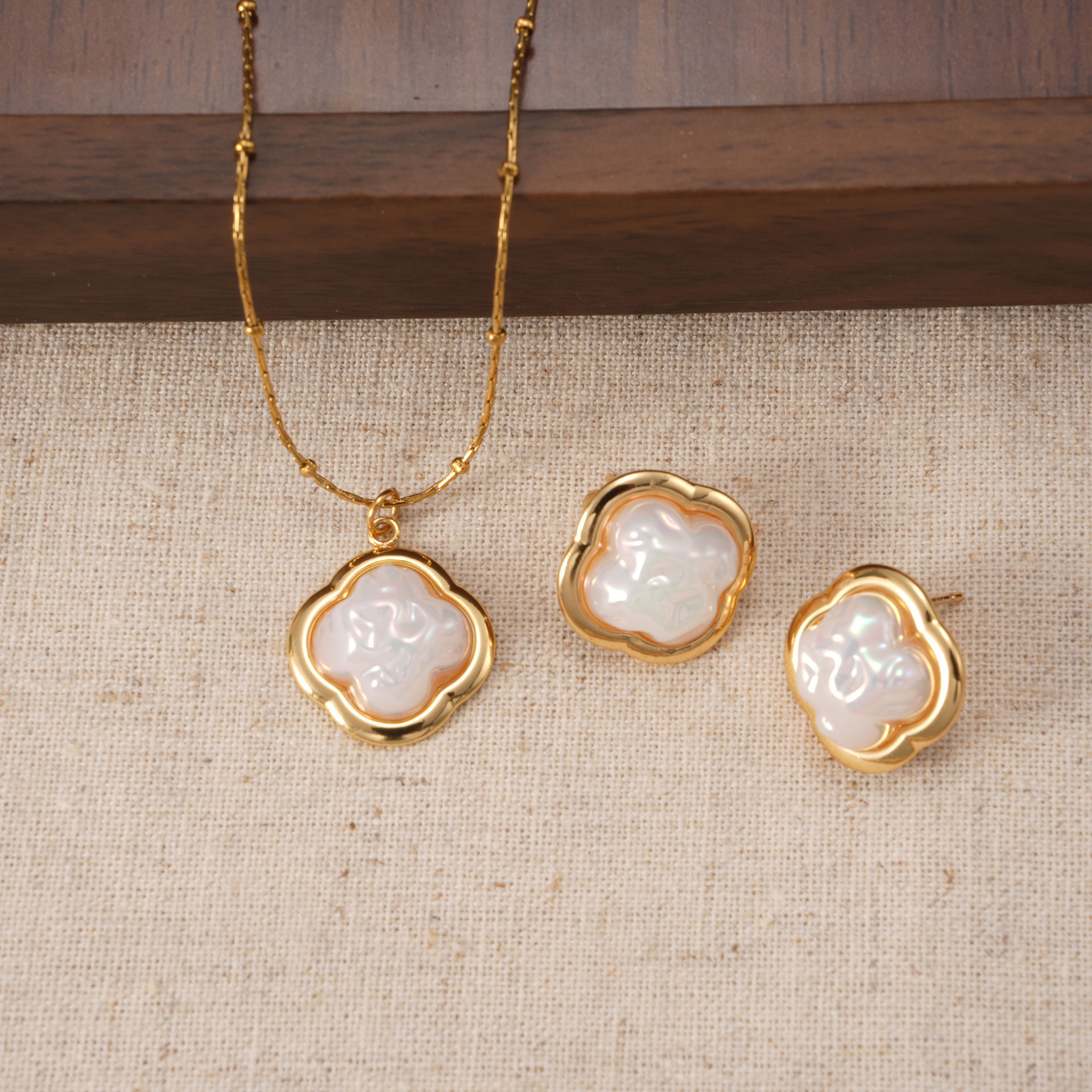European and American Cross-Border New Stainless Steel Flower Pearl Bracelet Necklace Women's Versatile Niche Light Luxury Jewelry Set