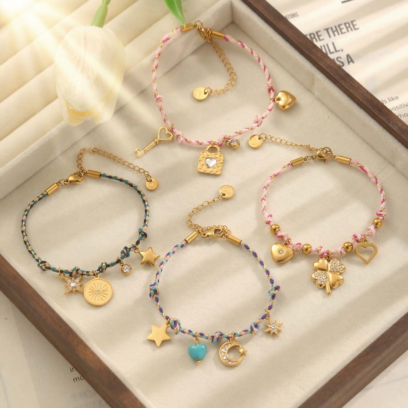 Yuwai European and American Beach Style Braided Bracelet Set Necklace Women's Bracelet Ocean Series Stainless Steel Pendant Necklace