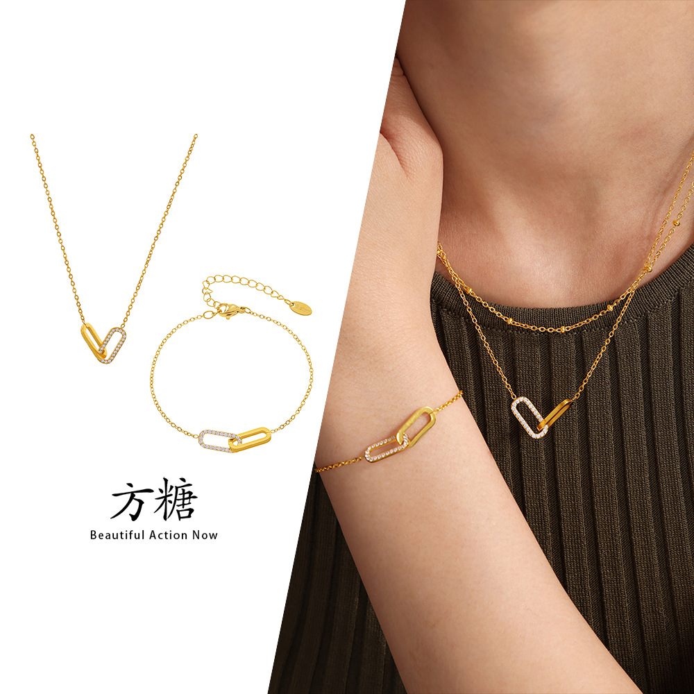 Sugar Rectangular Buckle Zircon Pendant Multi-layer Clavicle Chain Exquisite Bracelet European and American Cross-border Light Luxury suit