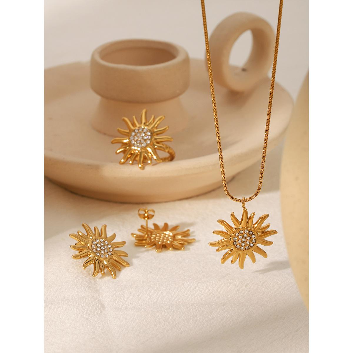 Cross-Border European and American Ins Style Diamond Sunflower Stainless Steel Necklace 18K Gold Titanium Steel Ring Sunflower Jewelry Set
