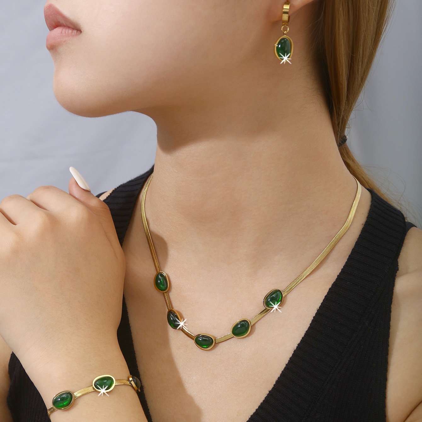 Cross-Border Wholesale 2023 New Necklace for Women, Versatile and Non-Fading Green Diamond Special-Shaped Retro Elegant Emerald Set