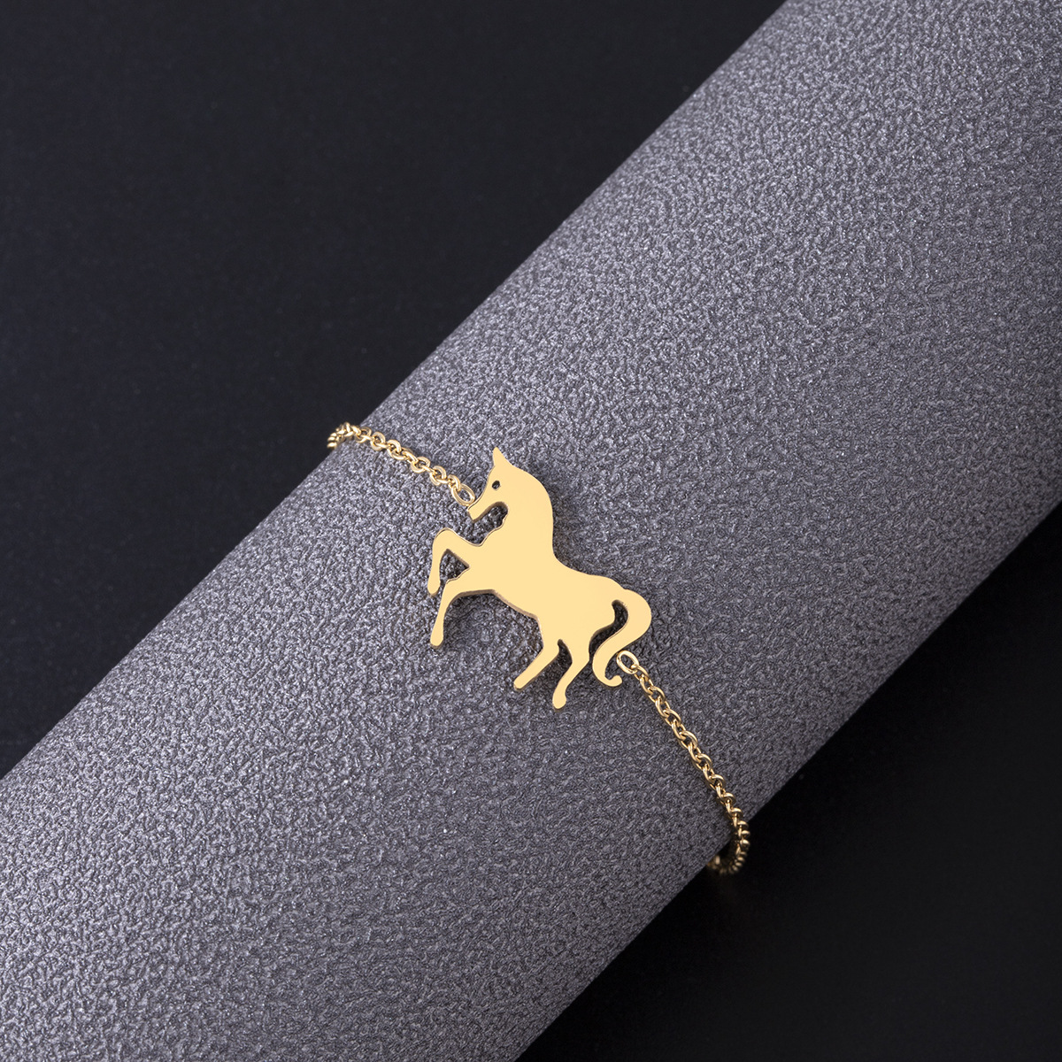 Stainless steel pony necklace bracelet earring set adjustable gold and silver set women's cute animal spot wholesale
