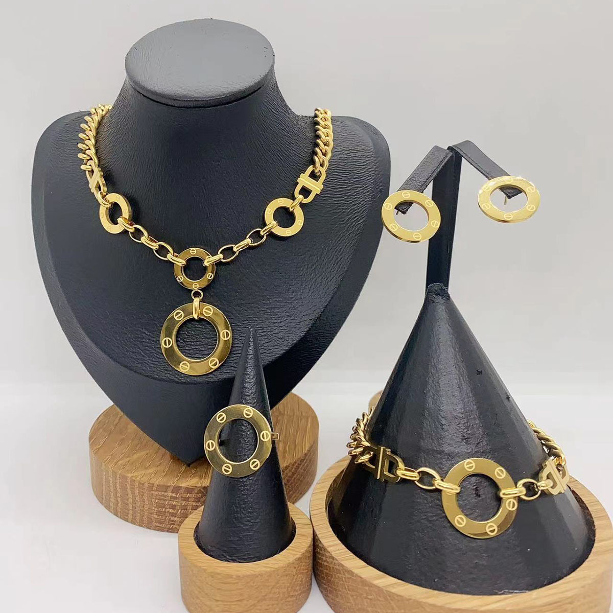 Cross-Border Popular Big-Name Jewelry Set Nail Pattern Necklace Bracelet Earrings Set Titanium Steel Jewelry Set