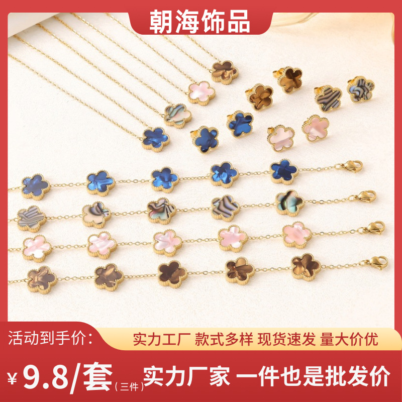 Five-leaf clover titanium steel plating 18K lucky flower fashion simple necklace bracelet earrings flower suit