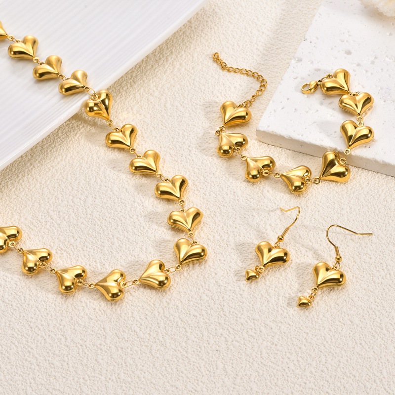 European and American Titanium Steel Clavicle Chain Accessible Luxury High-End 18K Gold Heart Necklace Bracelet Earrings Jewelry Set Ready for Sale