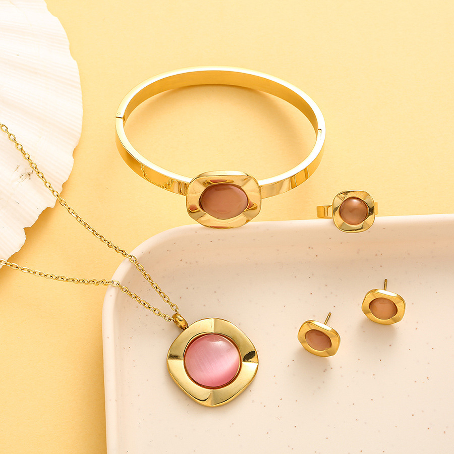 Cross-border Europe and the United States new jewelry opals necklace temperament stainless steel jewelry suit (four-piece)