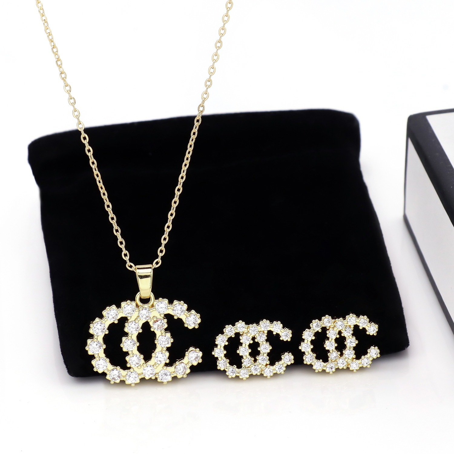 Cross-Border New Set, Small Fragrance Style Zircon Inlaid Set, Stainless Steel Chain Jewelry Wholesale Manufacturer