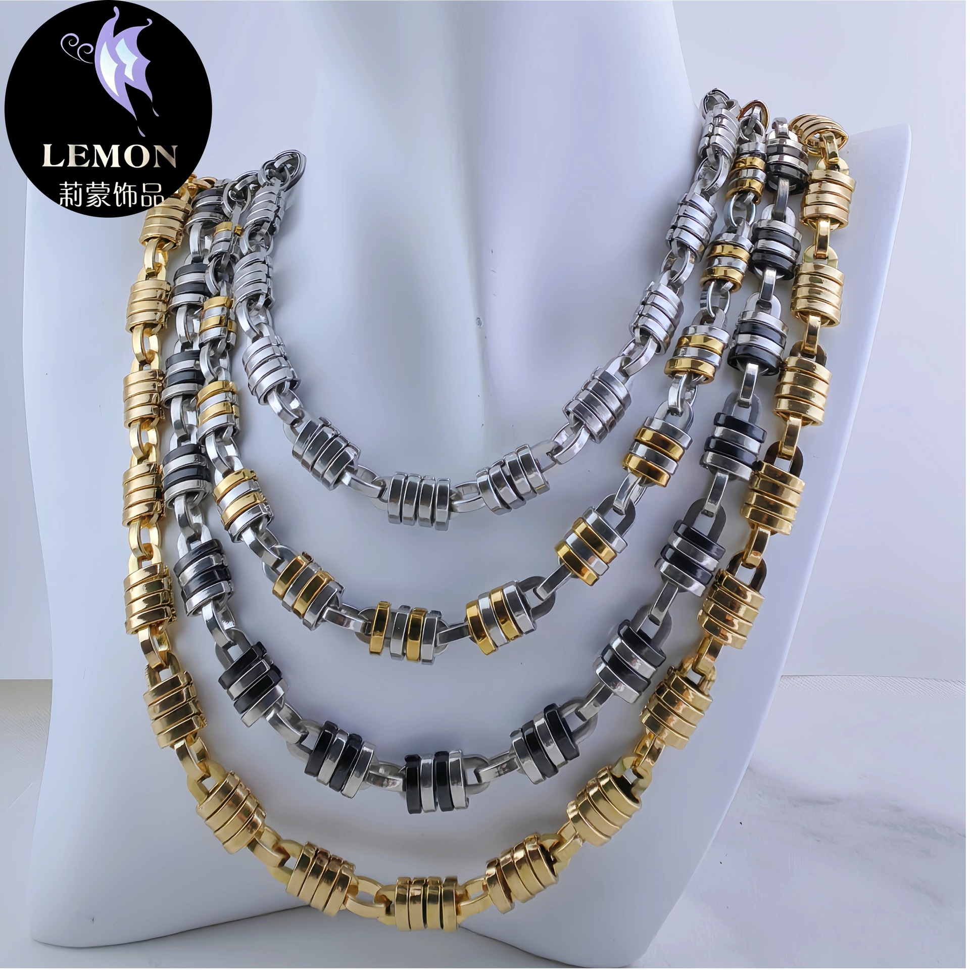 Factory in stock Amazon AliExpress E-commerce Handmade Chain Imperial Chain Stainless Steel Bracelet Necklace suit Jewelry