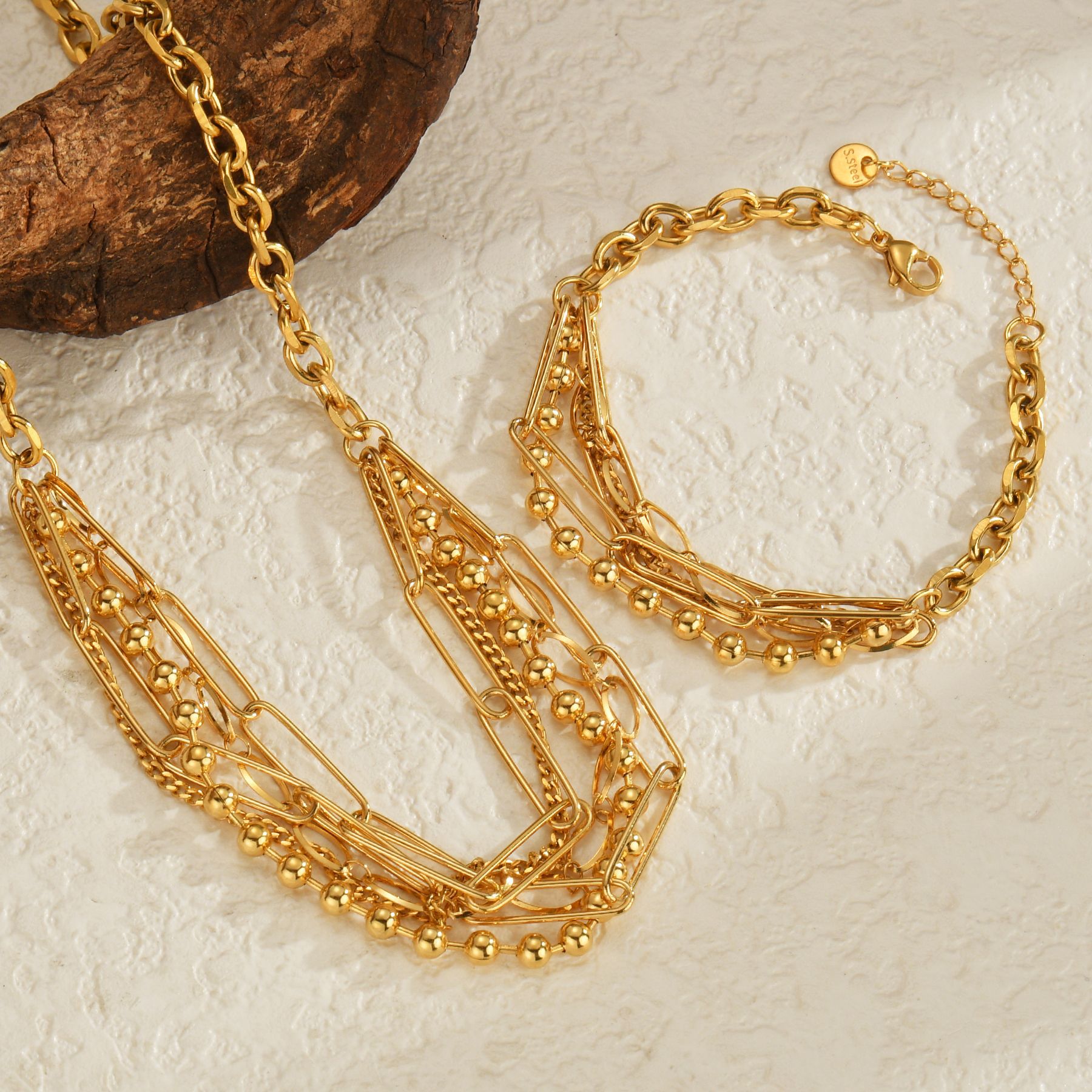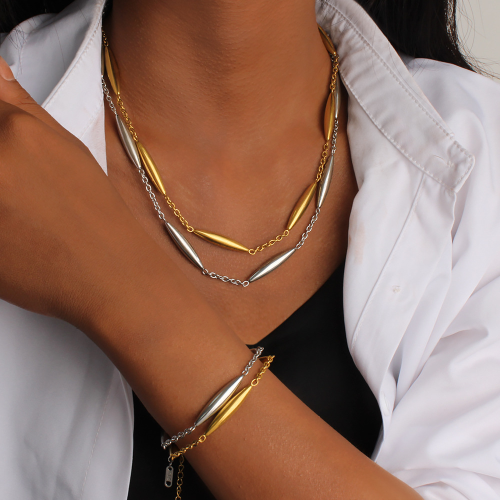 Europe and the United States cross-border new stainless steel chain stitching necklace bracelet suit niche design gold high-grade jewelry