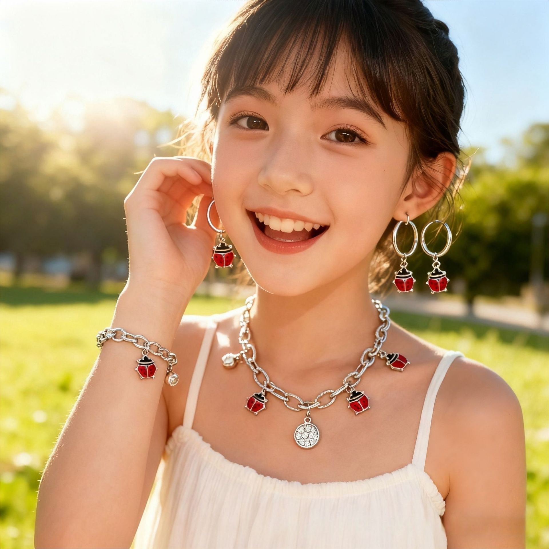 European and American style fashion temperament stainless steel ladybug jewelry suit cross-border fashion jewelry simple necklace bracelet earrings