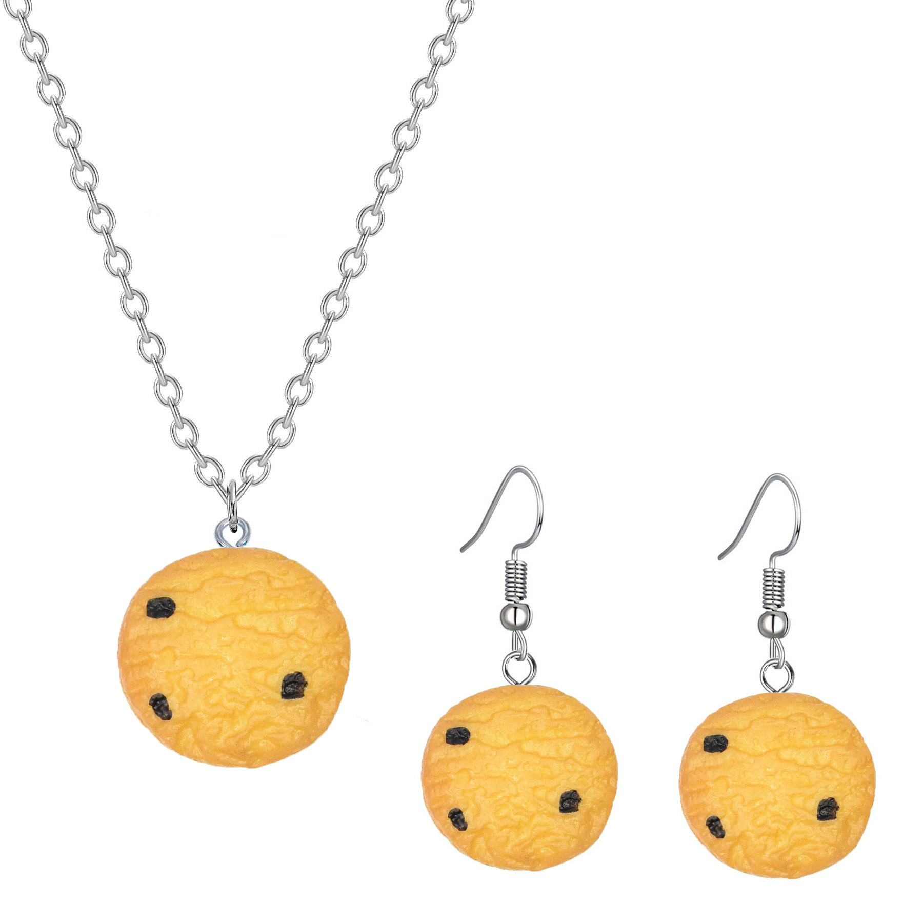Stainless Steel Chain Ear Hook Imitation Cookie Necklace Earrings suit Creative Food Pendant