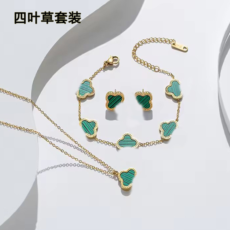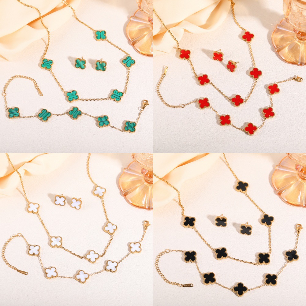 Double-sided four-leaf clover necklace bracelet earrings suit 18k vacuum plating non-fading stainless steel jewelry wholesale